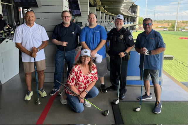 On Saturday Sept 6, members of the Mesa Sunrise Rotary Club participated in a Top Golf event to support Special Olympics! Mesa Sunrise Rotary Team with Special Olympic athlete, Steven (middle). We had a great time, supporting a great cause! Contact Bill Peters (Mesa Sunrise Rotarian) at William.Peters@mesaaz.gov if your club is looking for a Special Olympics Law Enforcement Torch Run speaker or would like to know how to support the program.