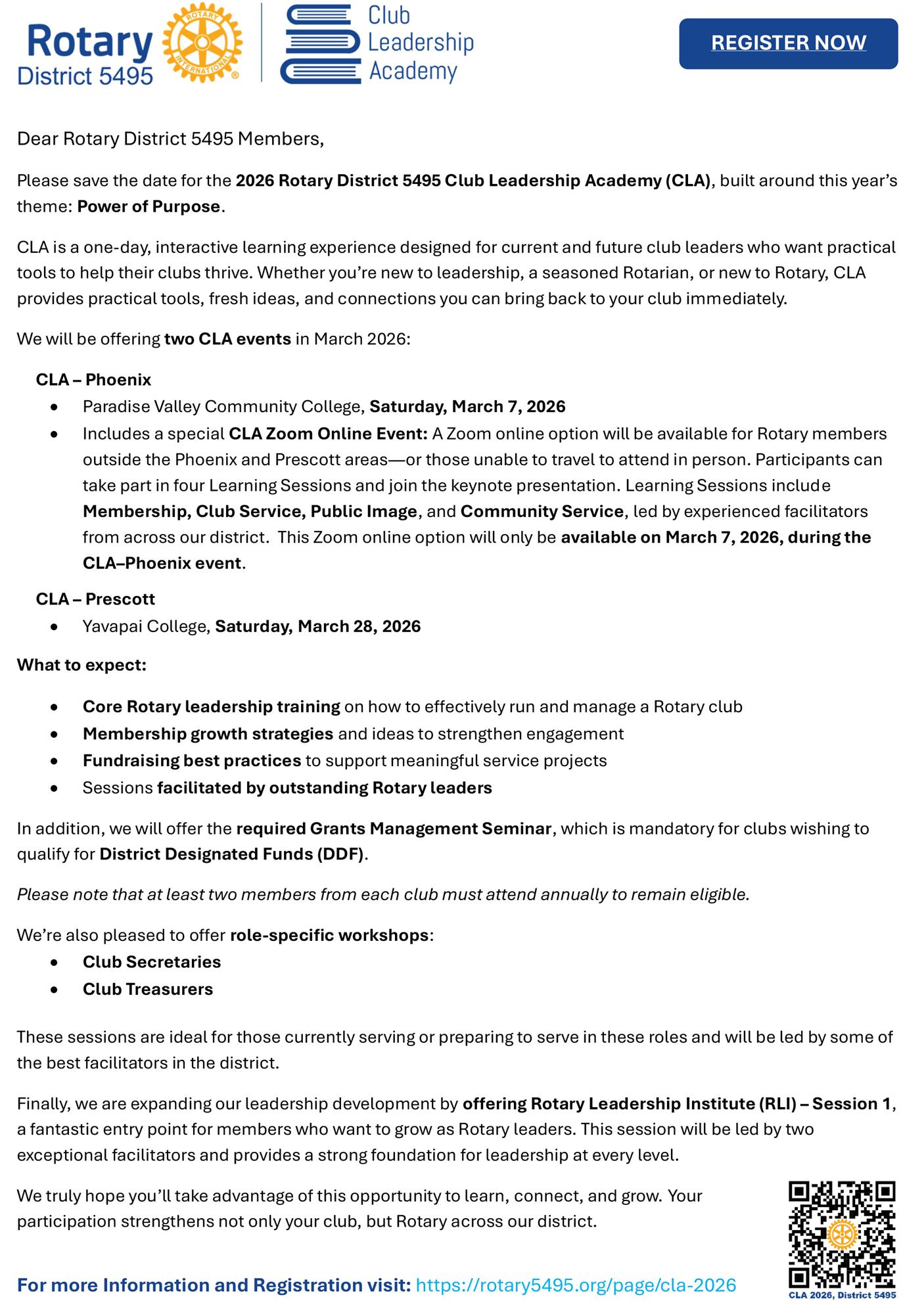 If we want to grow membership and deepen engagement, the answer is simple: invite people to serve with you before they ever attend a meeting. Let them feel the heartbeat of Rotary in action. Service builds connection, connection builds understanding, and understanding is the foundation of peace.